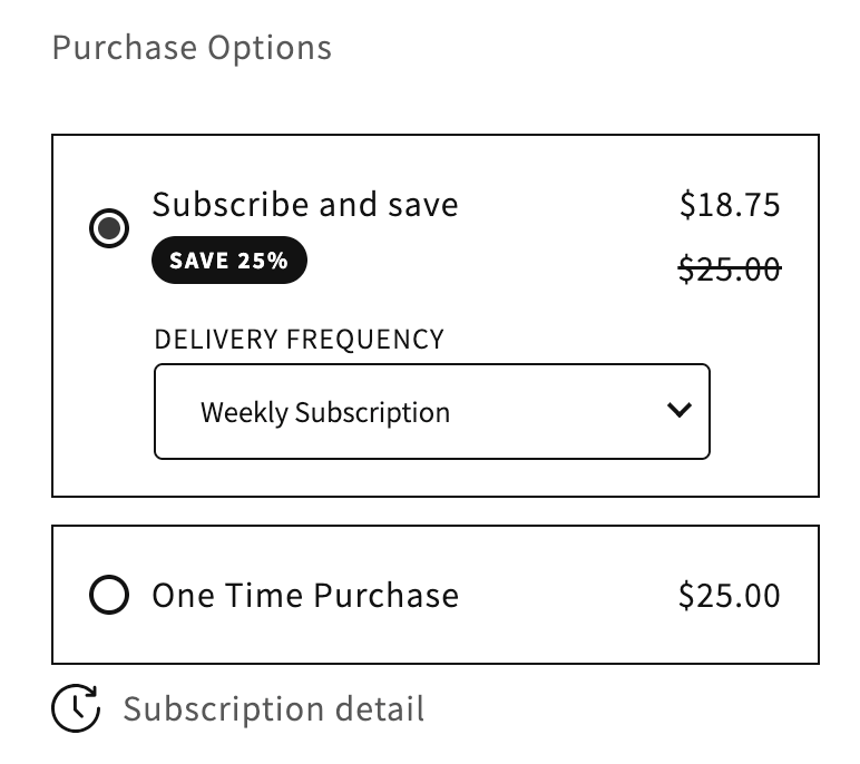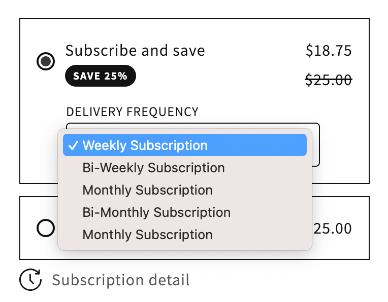 Sniff and Shifters can select “Subscribe and Save” directly on the product page, unlocking up to 25% off on your order. From here, you can choose your preferred delivery frequency—from weekly to monthly—and see the discounted subscription price alongside the regular one-time purchase option.