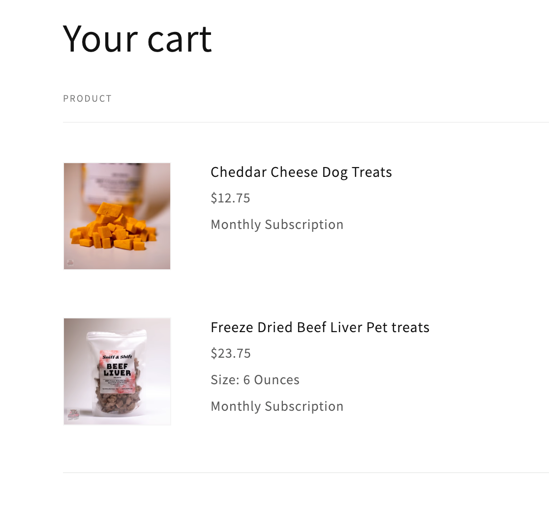 Once added to the cart, subscription items clearly show the selected delivery schedule (e.g., Monthly Subscription), so you can review your recurring order details before completing checkout. Build a subscription bundle by adding multiple items to your cart at once. bundles over $50 will receive free shipping.